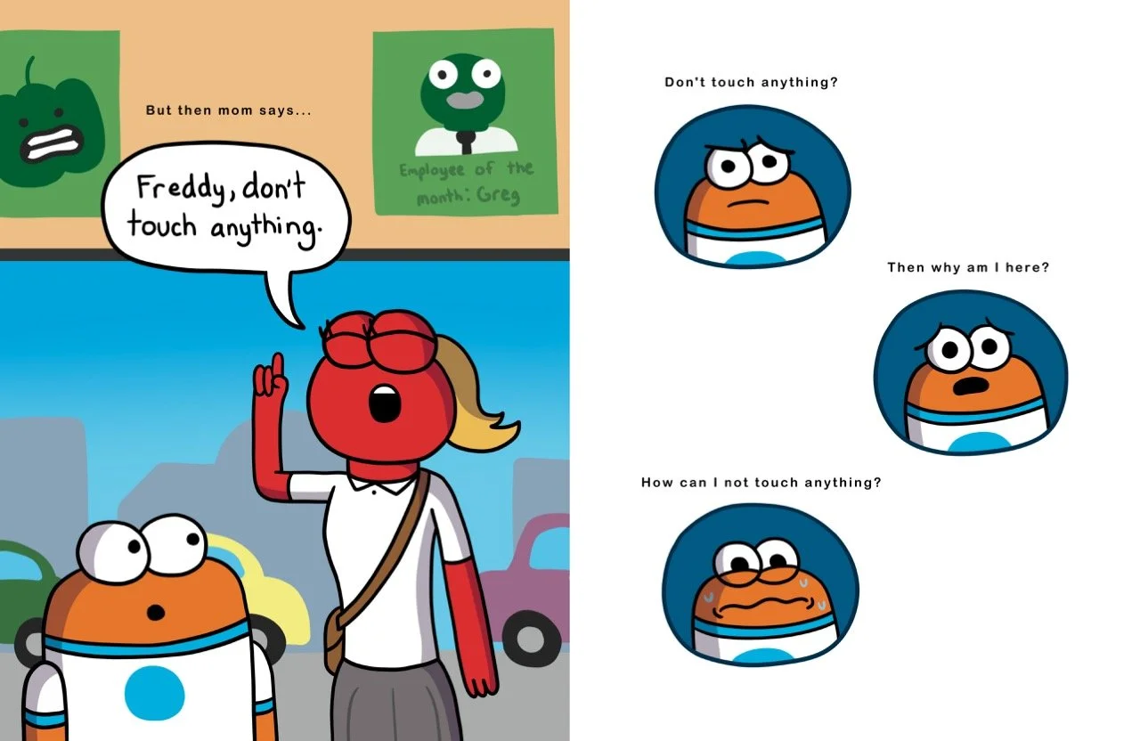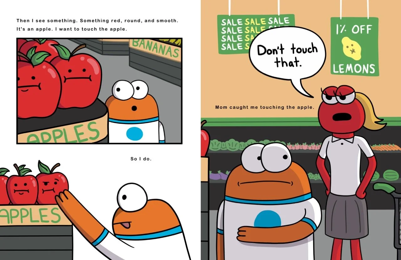 Freddy is very excited to go to the grocery store with his mom because he wants to touch everything he sees, but when she tells him not to touch anything, he must resist his urges and keep his hands to himself. As you read, you will see that this is not an easy task for Freddy.